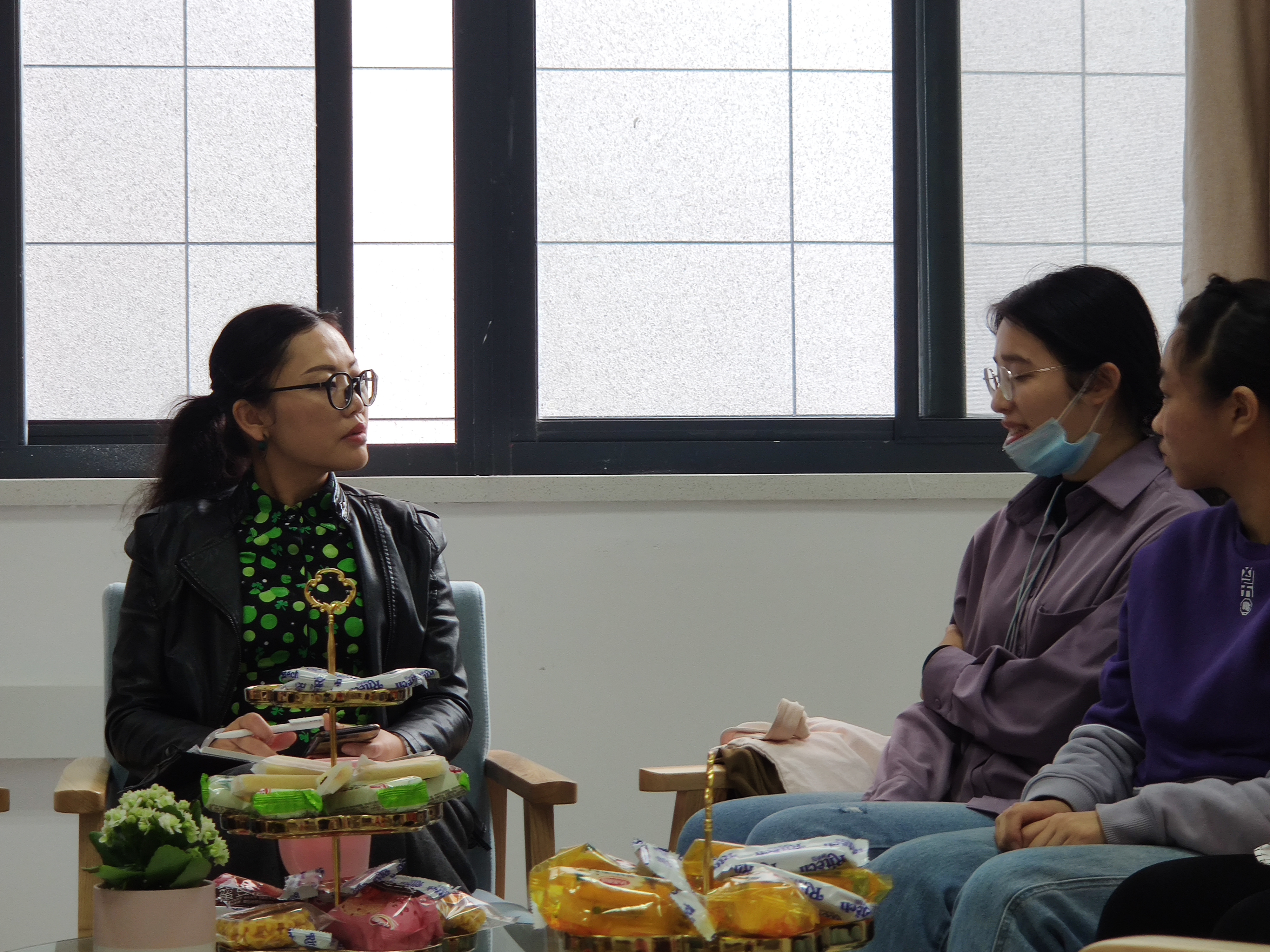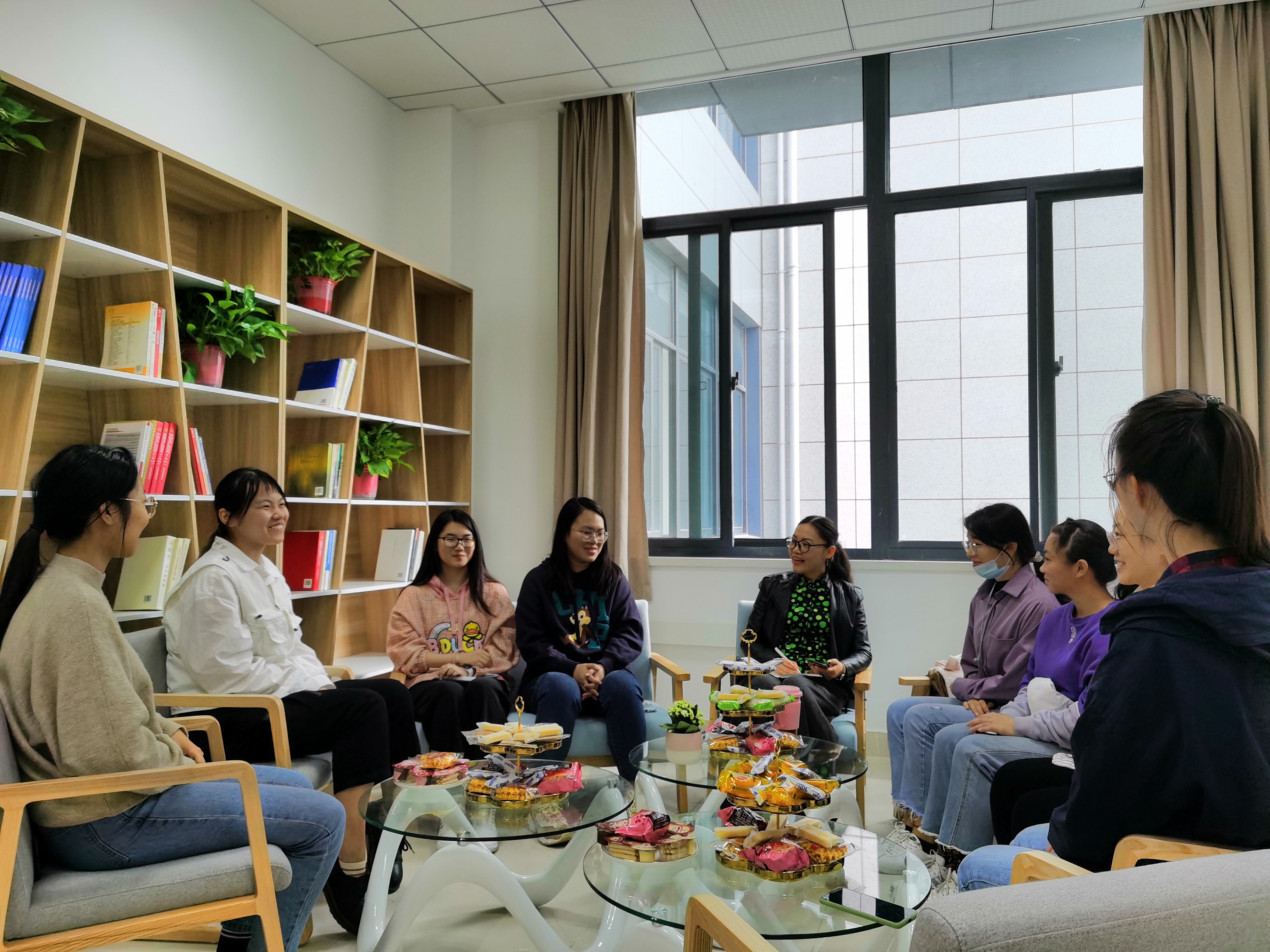 园丁心血化春雨,桃李芳香满神州。2020年10月26日上午,天下布魔 B315会议室迎来了不一样的面貌,氤氲的热茶,香甜的点心,充满诗意和花香的房间,党员教师结对宿舍下午茶交流会在这里如期开展。此次活动邀请到了材料加工工程系支部书记潘蕾老师与怡园18栋501-03、501-04两间寝室的8名同学进行了深入的交谈,交流会在一派温馨的氛围中顺利进行。