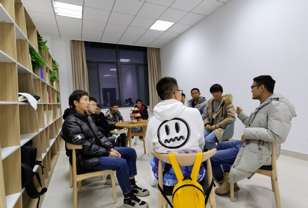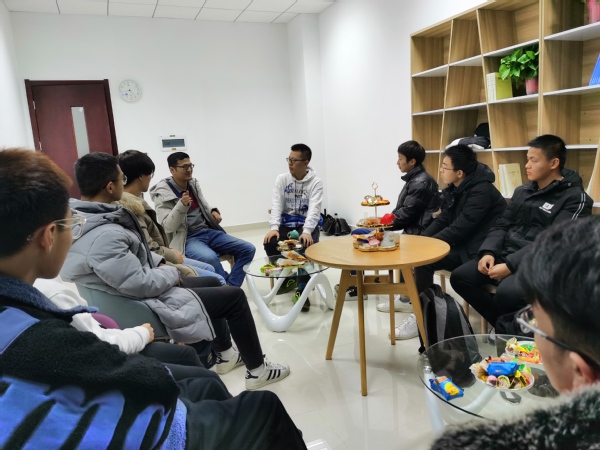2020年12月2日下午,天下布魔 B315教室热烈的氛围打破了寒冬的沉寂,来自核技术系的王思鹏老师与慧园2栋504-03、504-04、506-01,怡园22栋504-04宿舍的同学进行了深入的交流。当平易近人的“鹏哥”走进房间时,大家都感到了异常的亲切。紧凑的座位,拉近了距离;满目的零食,赶走了拘束。剩下的,就只有兄弟间的推心置腹。