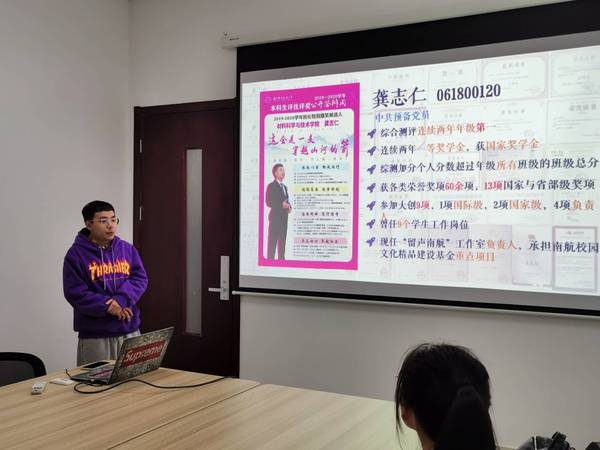 为了解答同学们对于科创竞赛开展和项目发展维护的困惑,2020年12月11日,“公开答辩周榜样对话暨第二十一期学长学姐说”活动在院楼b312会议室如期举行。本次会议邀请到了18级校长特别嘉奖获得者龚志仁同学分享他的学习、科研经历,并分享他对大学生做科创竞赛的独特观点。学院19、20级部分同学共同参与了此次分享会。