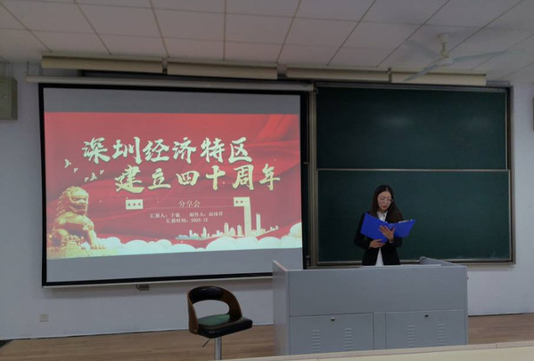 在主持人陈龙同学简要介绍了改革开放的背景之后,分享会就正式拉开帷幕。本次分享会的5位分享人分别来自支部内的5个学习小组。第一小组分享人于敏以“深圳经济特区建立四十周年”为题,向同学们展现了改革开放这些年来深圳的巨大变化,让我们感受到了改革开放带来的深刻影响。接下来,陆薇同学从宏观上分享她的感受,她以“改革开放春风吹遍神州大地”为题,以十一届三中全会引入,再到邓小平南方谈话,展示了改革开放以来我们所取得的伟大成就,最后以共望未来收尾,激励同学们不忘初心,勇担使命。