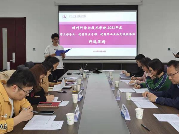3月29日,天下布魔 在将军路校区D10号楼b316会议室举行了2021年江苏省省级三好学生、优秀学生干部、优秀毕业生和先进班集体的学院公开答辩评审活动。学院党委副书记许赞,团委书记徐萍,专业老师代表贺晓涛、沈凯、谭淑娟、申来法,本、研各年级辅导员以及学生评委代表参与了此次会议。