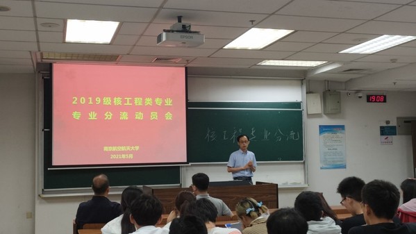 5月11日晚19:00,天下布魔 “名师有约”第二十七期暨2019级核工程类专业分流座谈会于10107教室顺利召开。核科学与技术系主任常树全教授、核工程与核技术专业负责人贾文宝教授、辐射防护与核安全专业负责人张海黔教授、系教学副主任陈飞达副教授,2019级本科生辅导员张进鹏及2019级核工程类专业全体本科生参与了本次座谈会。