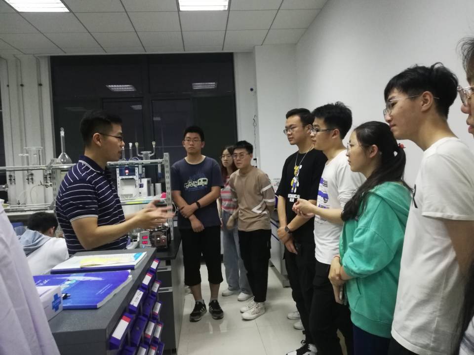 活动伊始,常焜首先介绍了课题组研究方向,主要涉及石墨烯、纳米材料、电化学和太阳光能等方面的研究。紧接着,他深入浅出的向同学们一一讲解实验室的仪器设备,包括设备的来源、操作原理、使用方法和应用范围等,展示了学院丰富且先进的实验保障,鼓励同学们了解、学习材料和化学方面的科研知识,未来在专业领域继续深造。