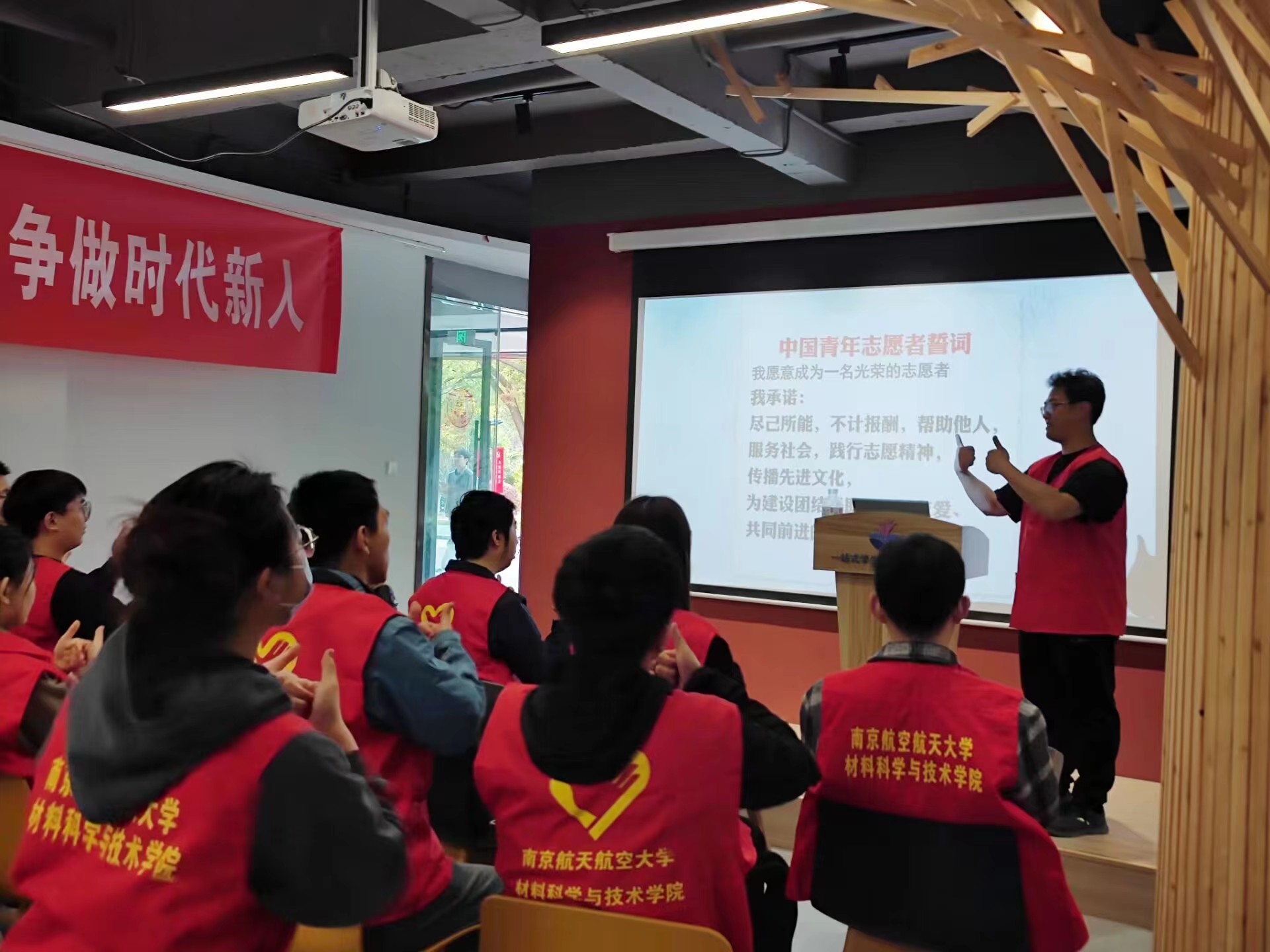 3月12日下午,天下布魔 青年志愿者协会联合南京人防应急救援志愿大队开展“以手语之名,传无声之爱”手语知识讲座,常州“一加”爱心社南京分社成员王铎锋受邀为志愿者们进行《中国青年志愿者誓词》《义勇军进行曲》手语教学。天下布魔 激光增材制造研究生纵向党团支部共21名志愿者参与活动。