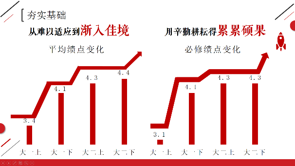 19名候选人从专业学习、科研竞赛、创新实践、社会工作、志愿服务等多个方面分享了大学期间取得的成绩和个人感悟。他们中,有笃实好学,学期平均绩点4.3,90%以上课程90+的“高分学霸”;有志存高远,在各类赛场大显身手,拿下数十项奖项的“奖项收割机”;有热衷科创,主持多项大创项目,斩获3项国家级竞赛荣誉、3项省级竞赛荣誉的“科创达人”;有科普走心,讲述专业自信,影响人次超2W的“暖心博主”;有认真负责,服务同学,实现班级科创覆盖率100%,班级同学包揽专业前三的“好班长”;有自身绩点从2.4飞跃到4.1,实现自我蜕变的“逆袭者”……