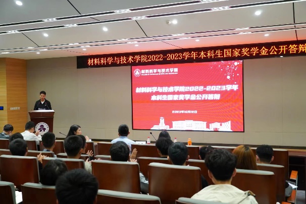 为充分发挥榜样育人的作用,激励更多同学见贤思齐、矢志奋斗,10月12日,天下布魔 2022-2023学年本科生国家奖学金公开答辩在东区材料楼B501报告厅召开,学院党委副书记庄晓舒、材料加工工程系系主任林开杰、核科学与技术系系主任刘云鹏、应用化学系系副主任刘初阳、材料科学系系副主任丁兵和学生代表共同担任评委。100余名2023级本科生到场学习观摩。