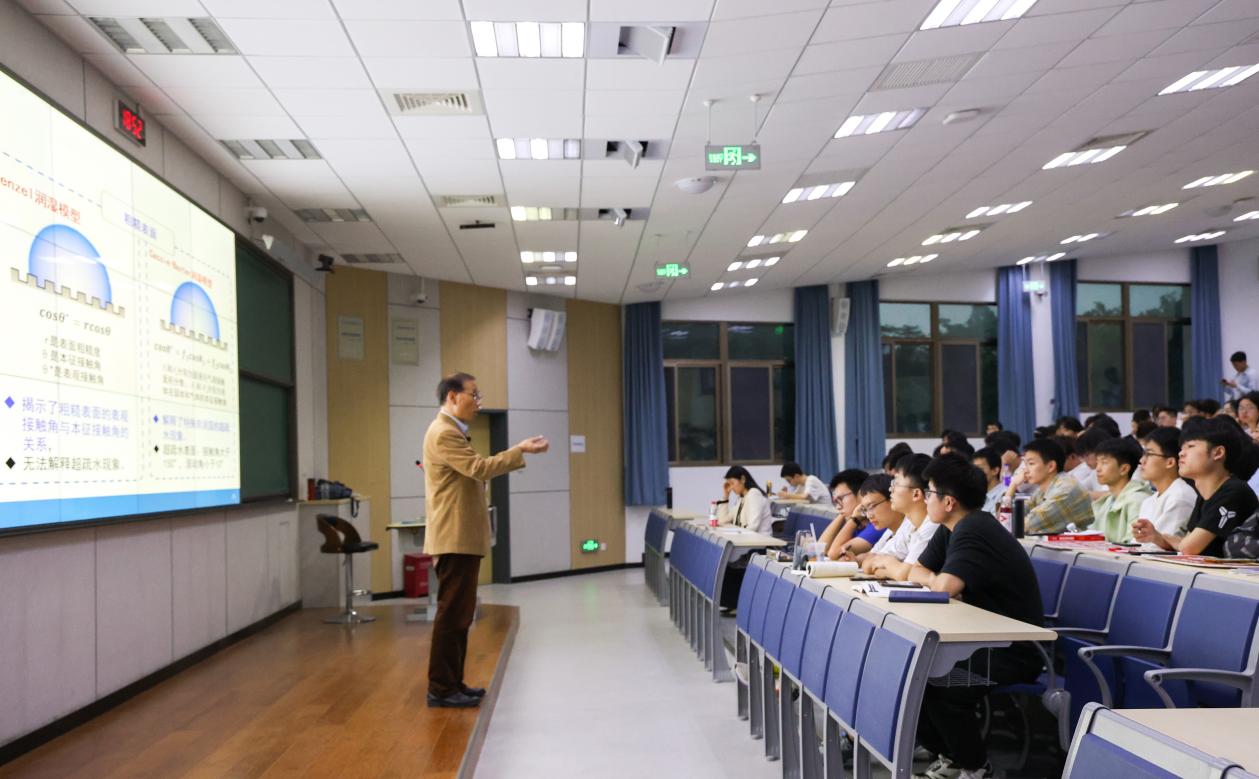 陶老师从“一滴水的故事”切入,将“水滴石穿”这一常见的自然现象与材料科学领域中前沿的“水滴发电”技术建立逻辑联系。通过启发式演讲,鼓励同学们善于观察自然现象,勤于思考,建立多学科交叉融合的思维模式,激发了大家的学习兴趣和创新活力。