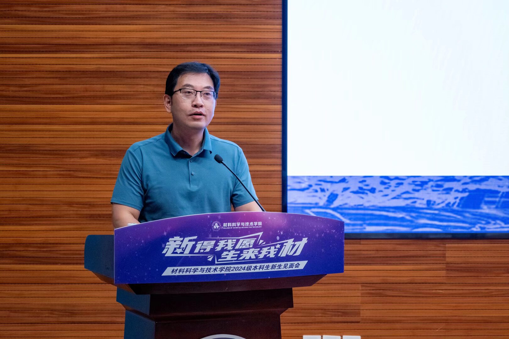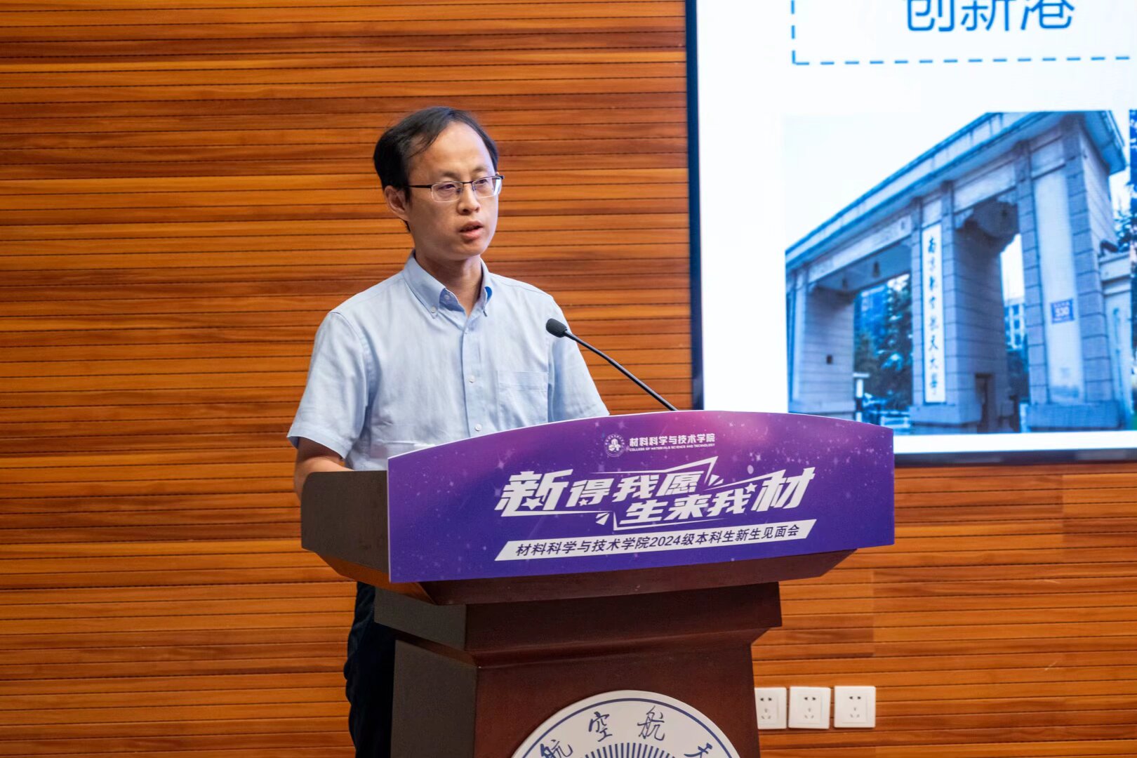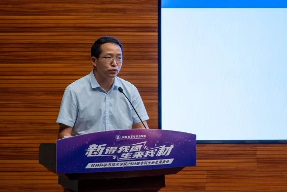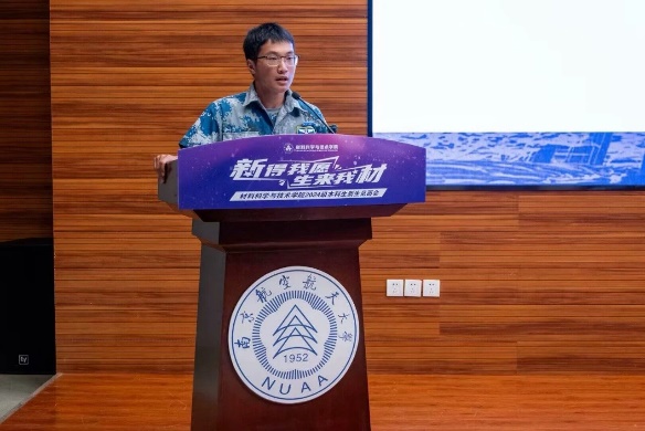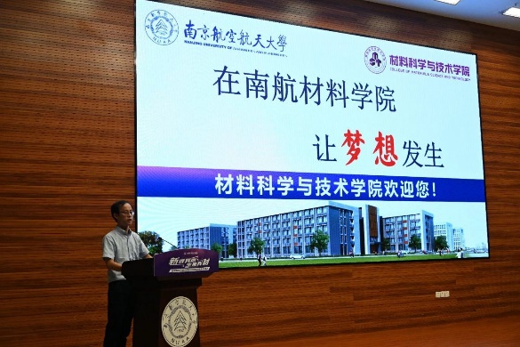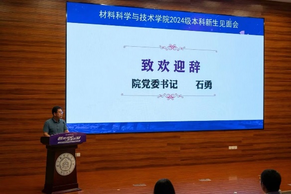 院党委书记石勇致欢迎辞,并寄语新生三点希望。一是要砥砺报国之志,成为可堪大任的三航之材;二是要修炼钻研态度,成为踏实肯干的栋梁之材;三是要涵育进取情怀,成为奋勇攀登的报国之材。他希望同学们探索科学,求微知著,成长为一名有"材"有"料"的材院人!