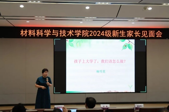 校心理教育中心主任杨雪花为家长做心理健康教育讲座。她从新生入校后,家长如何做好身份转变为切入点,向家长介绍了如何在思想、心理、身份上的转变。她指出,家长要主动了解孩子在校情况,用鼓励、理解和尊重引导孩子尽快适应大学生活,增进和孩子的良好沟通,和学校一起为孩子塑造阳光心态保驾护航。