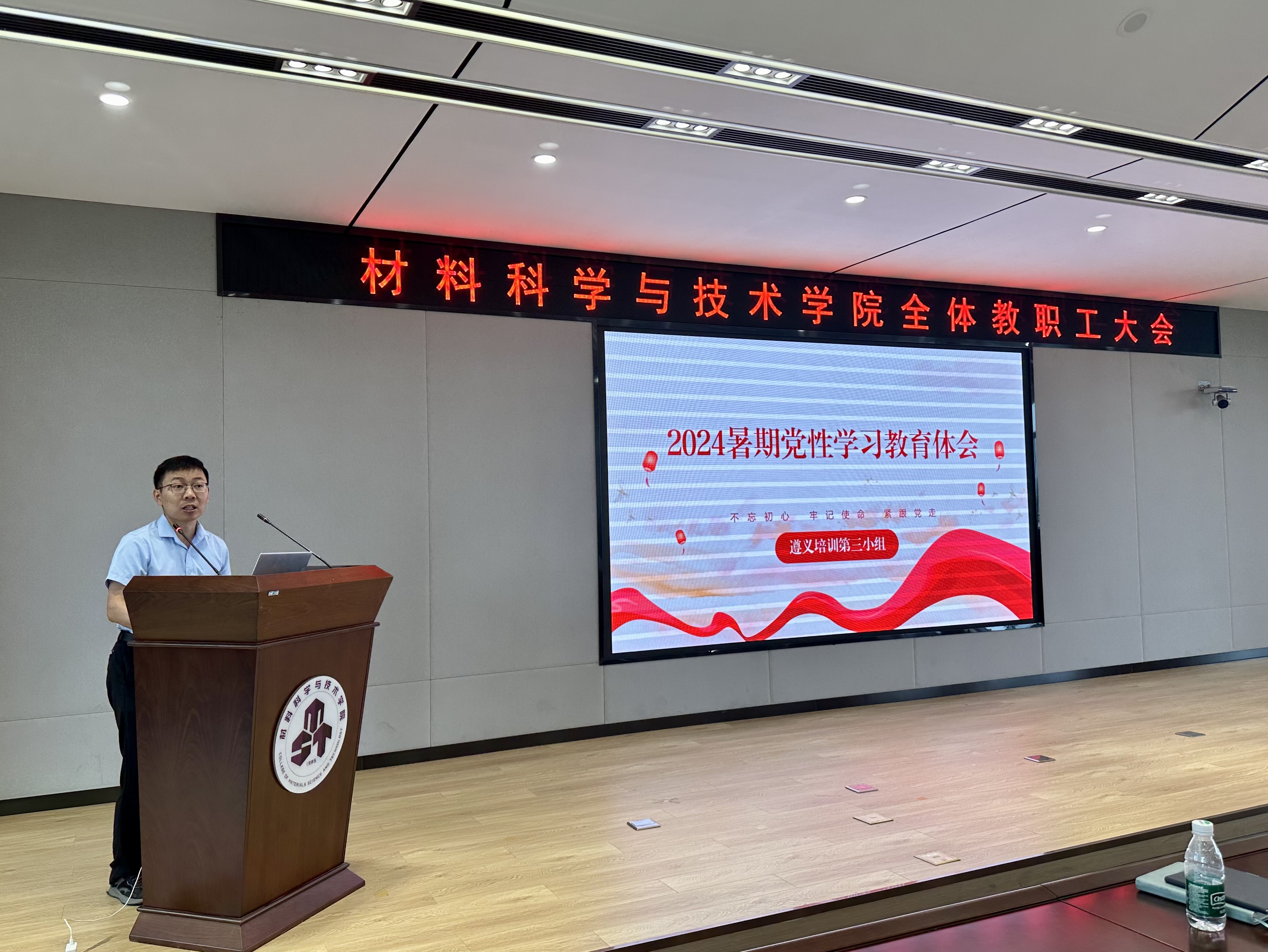 学院邀请教师代表张圣亮、佟浩、王磊磊、李静静四位教师,分享了暑期中参加学校“强党性 正作风 守纪律”党性教育专题培训班(西柏坡)、南航教师暑期学校第六期(邹城)、学院党性教育专题培训班(遵义)的学习心得体会。