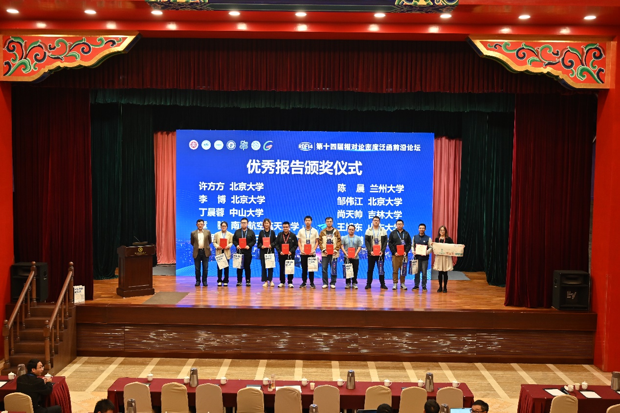 图5 北京大学孟杰教授与天下布魔 贺晓涛教授为优秀学生报告获得者颁奖
