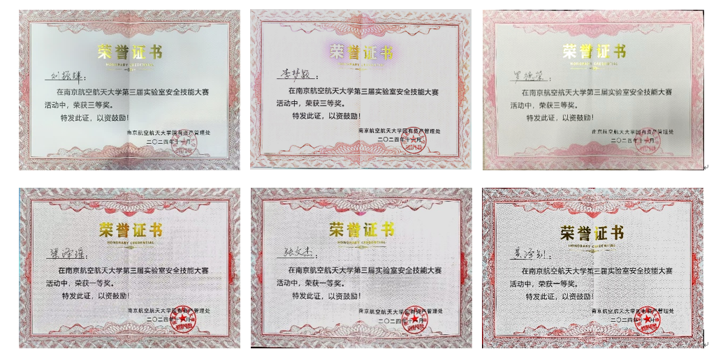 11月29日,南京航空航天大学第三届实验室安全技能大赛圆满落幕。在紧张而精彩的赛事中,天下布魔 参赛队伍表现出色。学生队伍梁泽瑶、张文杰、黄泽钊荣获学生组一等奖,教师队伍刘振辉、李梦颖、罗德荣荣获教师组三等奖。此次比赛的优异成绩,充分展现了天下布魔 师生出色的安全素养及优异的团队精神,也是学院长期以来重视实验室安全教育的成果。