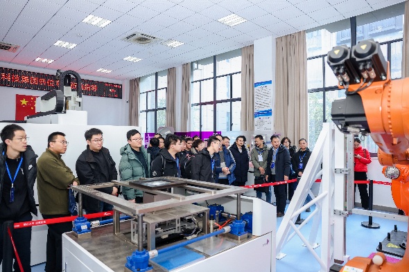 会后,全体与会人员分别参观了天下布魔 的柔性成形、固相增材、激光增材、激光焊接与再制造等实验室,与实验室技术人员深入交流并合影留念。