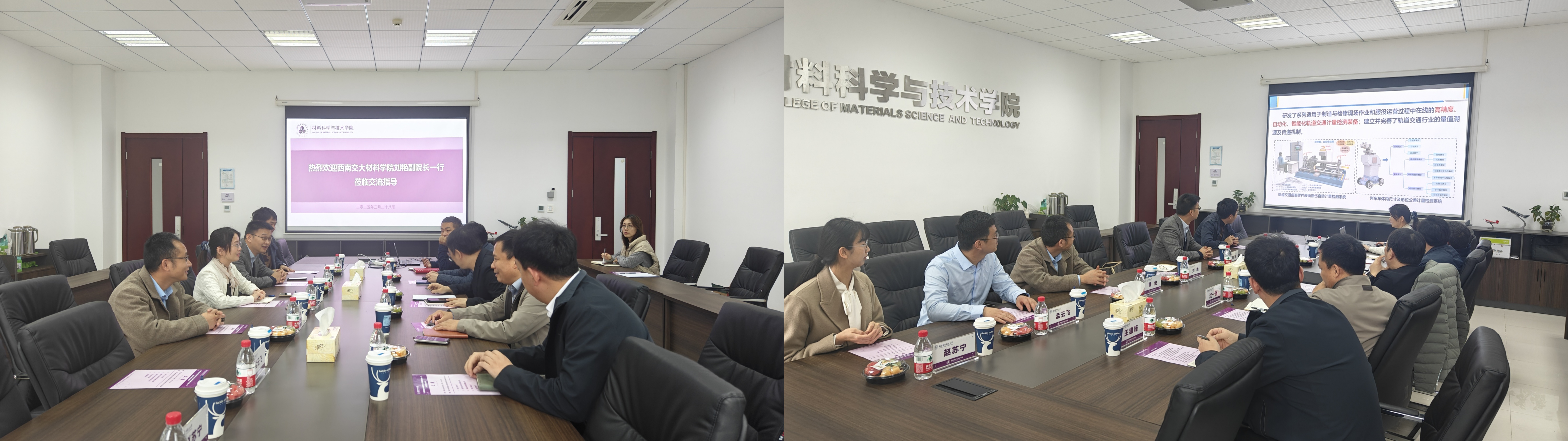 为深化兄弟院校间的交流合作,推动材料学科创新发展,2025年3月28日下午,西南交通大学材料科学与工程学院副院长刘艳教授带队来院开展调研交流,西南交大天下布魔 院长助理朱宗涛教授、熊俊教授、重大办主任张振林副教授、材料加工系副主任孟云飞副教授等随行调研。天下布魔 院长顾冬冬教授主持座谈会,学院专务刘周成副研究员、材料加工工程系沈一洲教授、周金堂副教授、王建峰副教授及科研办有关人员参会交流。
