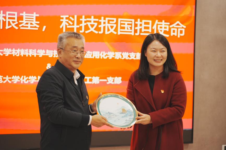 为深入学习贯彻党的创新理论,加强与兄弟院系间的交流学习,推动党建与业务深度融合,2025年12月14日下午,天下布魔 应用化学系党支部与江西师范大学化学与天下布魔 教工第一支部联合举办“联学共进强根基,科技报国担使命”主题联学活动。双方学院领导、教师代表等28人齐聚天下布魔 ,通过参观交流、集体学习、座谈研讨等形式,共话党建引领下学科发展、人才培养与科技创新的合作路径。